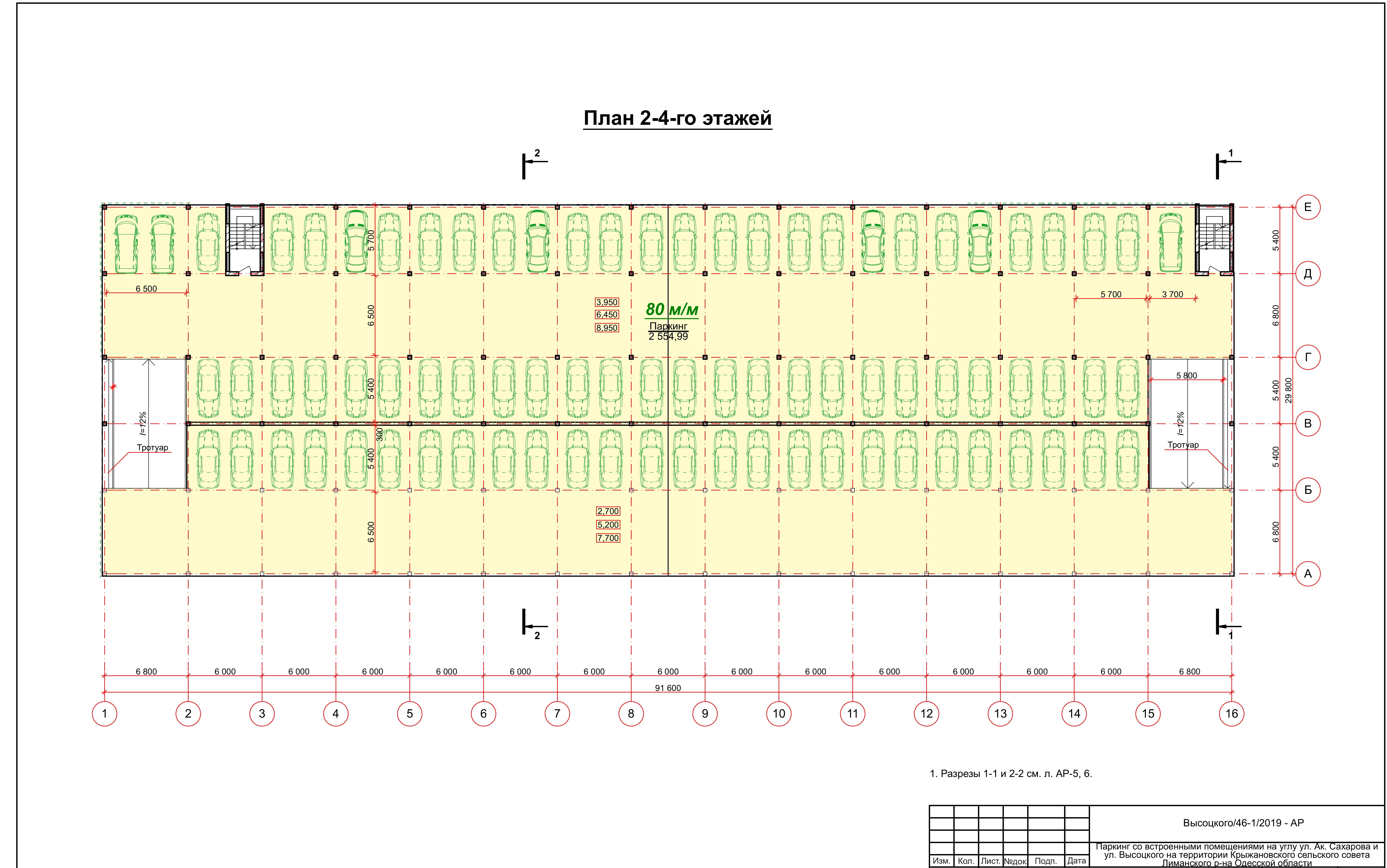 Стоимость машиномест , размер которых составляет 18 кв.м -11000 у.е