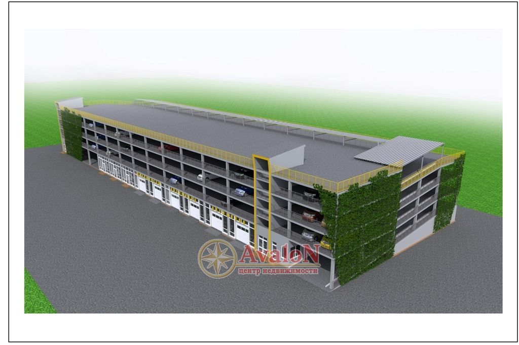 Наземный 4-х уровневый крытый паркинг на 300 машиномест. Расположен на пересечении улиц Сахарова /Высоцкого.