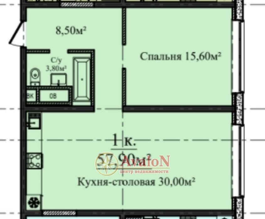 Продается 1-комнатная квартира с европейской планировкой в новом доме в Аркадии! Общая пл. квартиры 57.9 кв.м. кухня-гостиная 30 м. и отдельно спальня 15,6 кв.м. Состояние под чистовую отделку. Высота потолка 3,0 м. Дом расположен в паркой зоне вблизи пляжа Аркадия, Трасса здоровья, Ботанического сада.